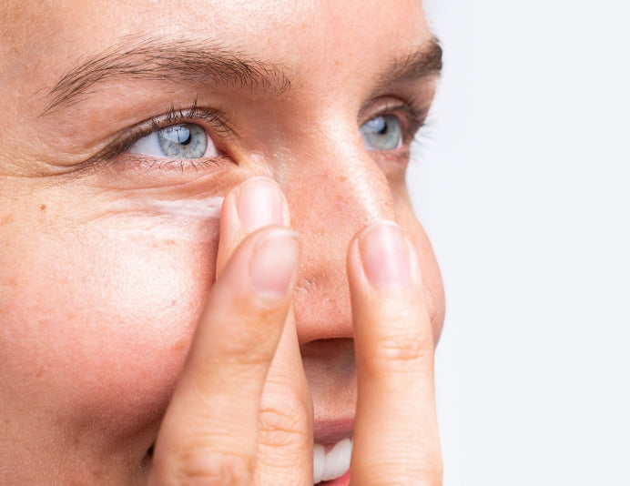 A: Our all-in-one eye cream works to reduce the appearance of fine lines & wrinkles, lighten dark circles, de-puff, and hydrate in one effortless step. The result: eyes that look naturally smoother, and more energized.
